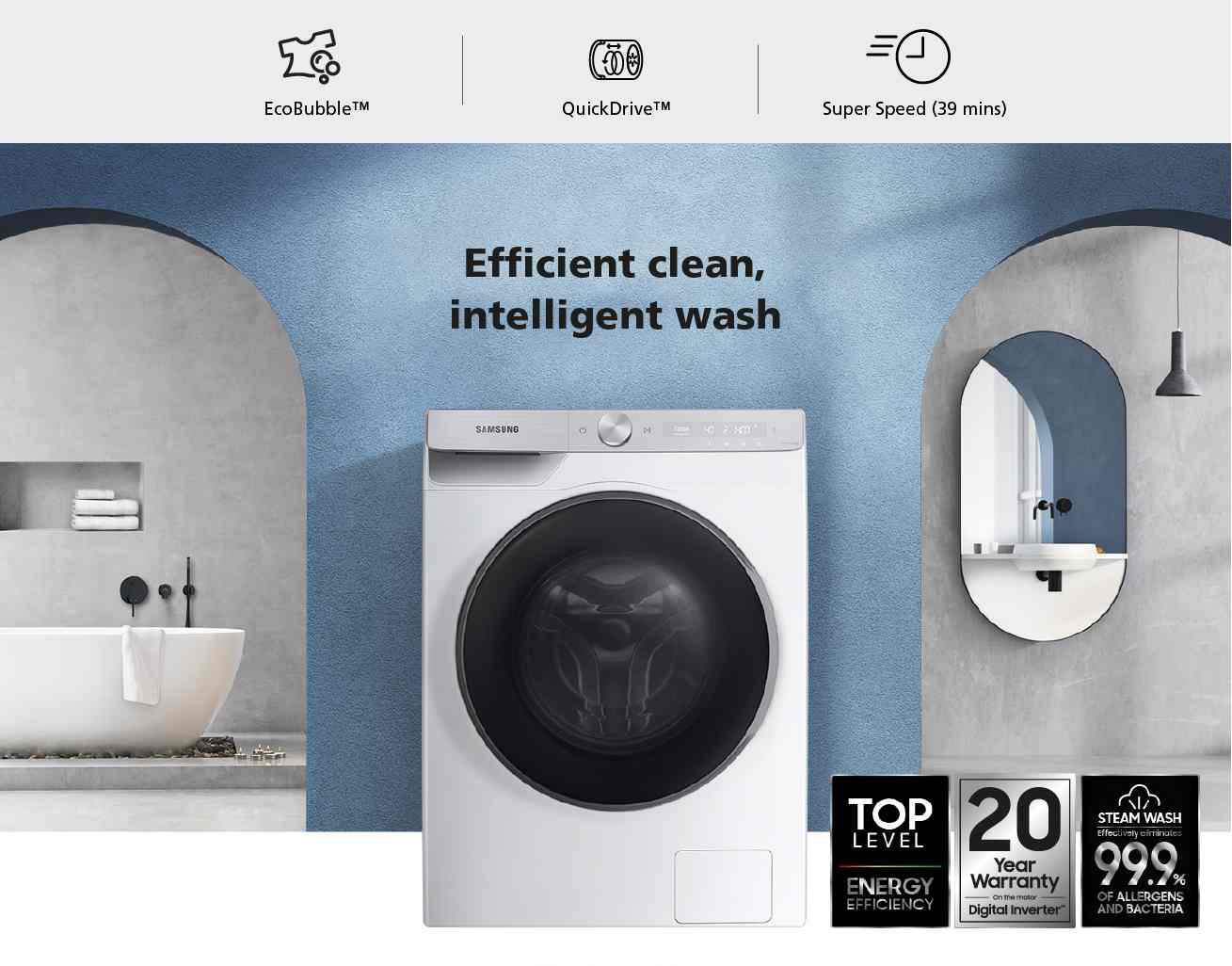 Mesin basuh Front Load Washer with AI Ecobubble™, dilengkapi dengan teknologi AI.