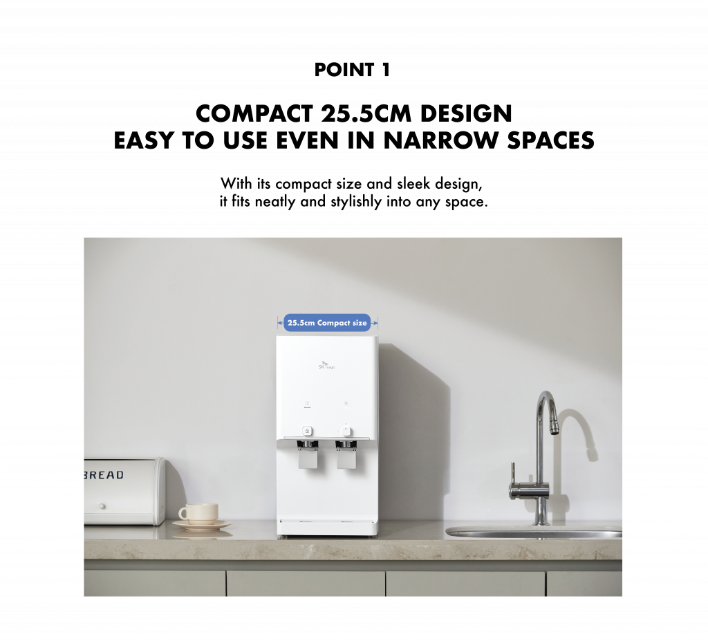 A SIMPLE & COMPACT DESIGN THAT FITS ANY SPACE WITH A GENEROUS WATER CAPACITY